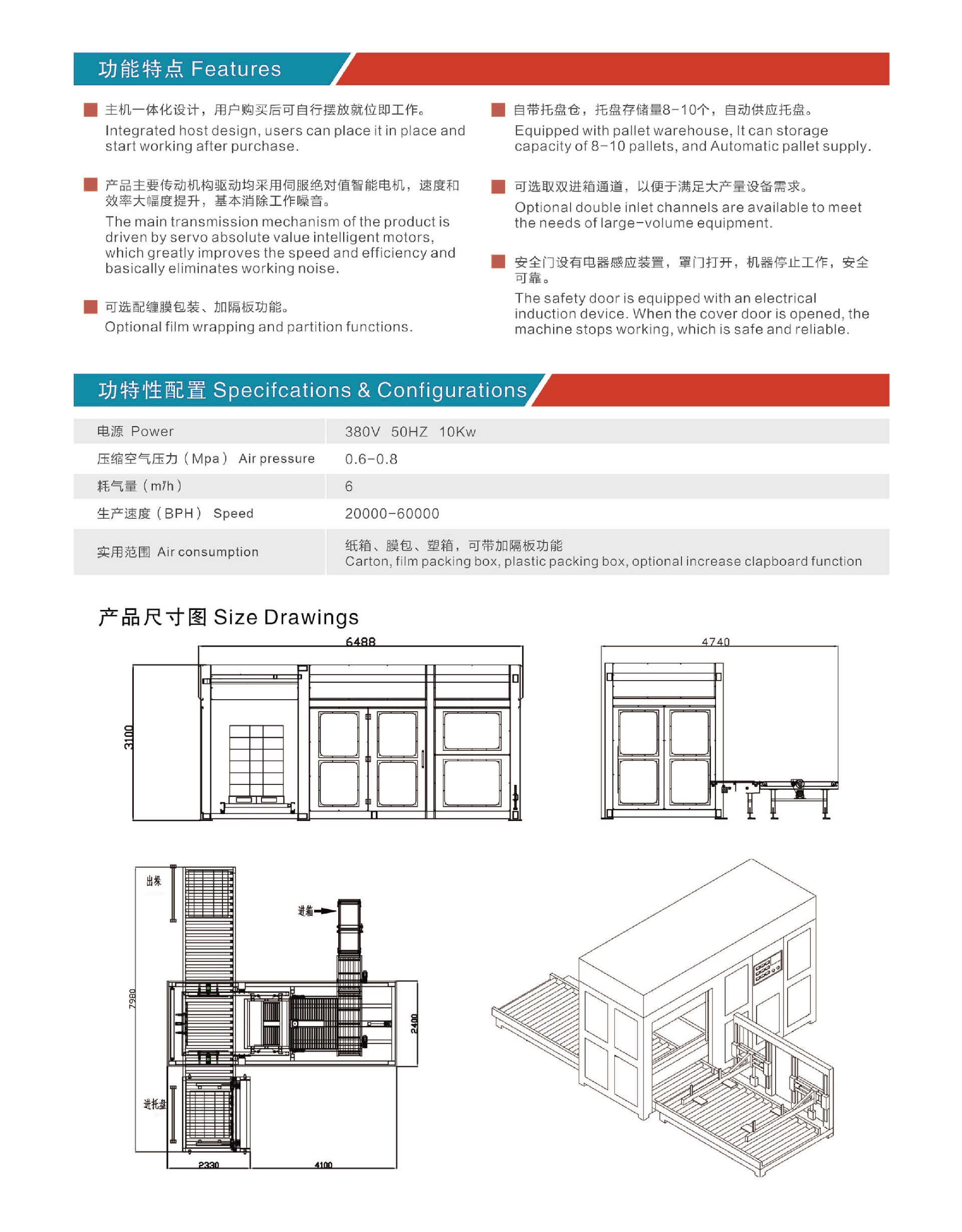 *紙箱供應系統采用剎車馬達控制,保證按預先設定好的位置輸送紙箱。